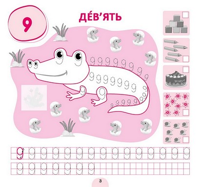 Цей зошит містить математичні прописи. На кожній сторінці на дитину чекає асоціативний малюнок, який потрібно навести по пунктиру й розфарбувати, а ще — прописи зі зразком написання певної цифри чи зображення фігури. Урізноманітнять роботу з виданням тематичні наліпки та цікаві завдання, які допоможуть перевірити навички лічби, знання графічного зображення цифр і фігур та уміння їх писати й малювати.