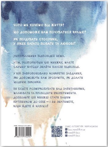 Виконуючи оригінальні завдання, які на вас чекають у книжці, ви відкриєте самих себе і врешті відповісте на свої запитання. Бо насправді всі відповіді всередині нас…
