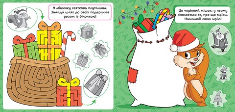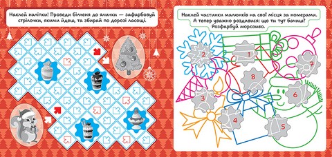 Ця книга запрошуює маленьких читачів поринути в казковий світ передсвяткових пригод. Разом із веселими й кмітливими персонажами діти виконуватимуть цікаві завдання для розвитку логіки, уваги і пам’яті. Яскраві, барвисті ілюстрації, що доповнюються інтерактивними наліпками, спонукатимуть малюків до застосування просторового й образного мислення.