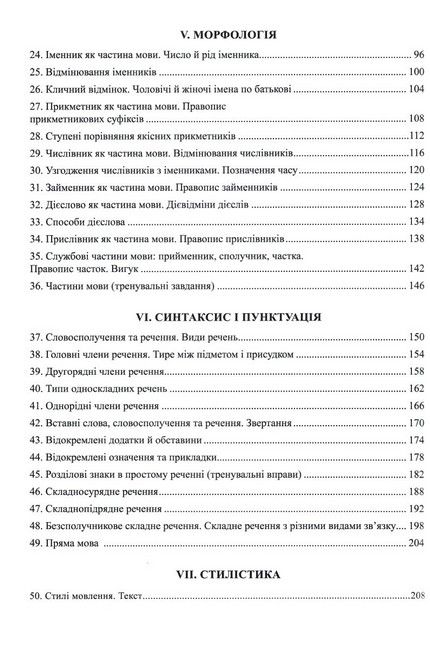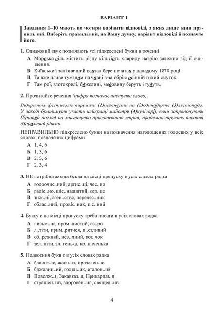 Зміст завдань відповідає програмі ЗНО, що охоплює всі мовні теми, передбачені вивченням у шкільному курсі української мови та літератури, а саме:
