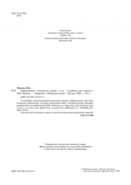 Конспекти уроків Я досліджую світ Інформатика 2 клас НУШ До підручника Н.О. Будної та ін. Авт: Мочула О.В. Вид-во: Богдан 72537