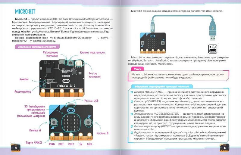 Зміст посібника — це опис різноманітних проєктів. Для реалізації проєктів знадобиться набір електроніки, основою якого є мікрокомп’ютер micro:bit, зазначений у модельній програмі. Проєкти розраховані на використання micro:bit V1, проте до посібника додано розділ із прикладами проєктів на використання micro:bit V2. Також під час реалізації проєктів заплановано використання допоміжних матеріалів, зокрема: картону, паперу, стрічки, фольги, конструктора LEGO© (за наявності) та ін.