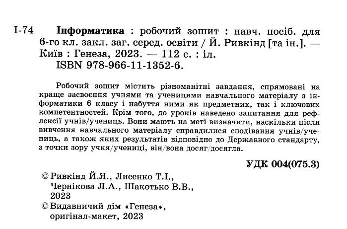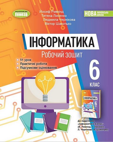 Зошит розроблено до підручника: НУШ Інформатика. 6 клас (автори: Ривкінд Й., Лисенко Т., Чернікова Л., Шакотько В.).