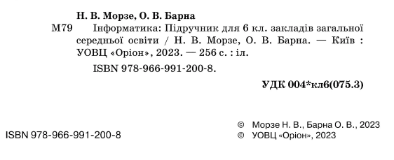 Підручник Інформатика 6 клас НУШ Авт: Н. Морзе О. Барна Вид-во: Оріон 100366