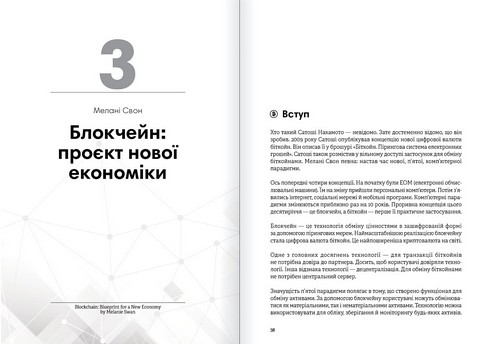 \nКнижка наповнена яскравими прикладами, що демонструють силу блокчейну, — від пірингових платежів до смарт-контрактів, здатних докорінно змінити юридичні й фінансові операції. Кожен розділ подає новий погляд на майбутнє, де людина повертає контроль над своїми даними, фінансами та життям.