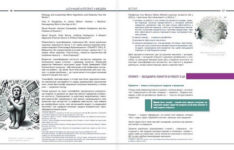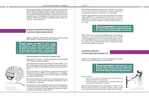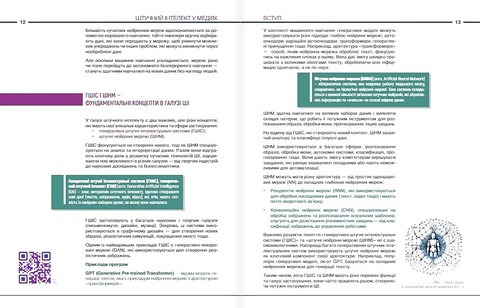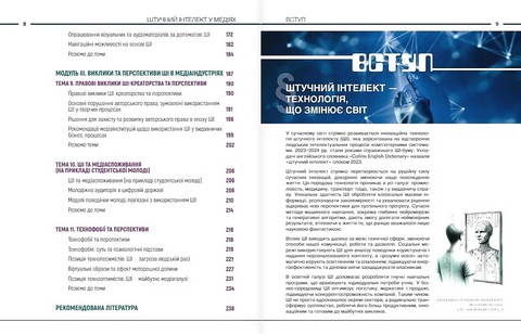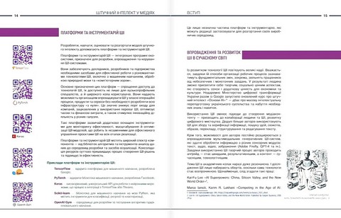 Навчальний посібник є першою спробою комплексно розглянути теоретичні й практичні аспекти застосування штучного інтелекту (ШІ) у медіях. Автори розглядають широкий спектр тем, зібраних у три модулі: «ШІ на різних медіаринках», «ШІ креаторство», «Виклики та перспективи ШІ в медіаіндустріях». Посібник містить багато прикладів, ілюстрацій, алгоритмів виконання практичних завдань, що сприяє набуттю навичок використання ШІ у медіадіяльності. До кожної теми додано перелік запитань та завдань, спрямованих на закріплення знань. Книжка стане в пригоді студентам спеціальності 061 «Журналістика», а також усім зацікавленим тематикою штучного інтелекту та інноваційного розвитку сучасної медіагалузі.