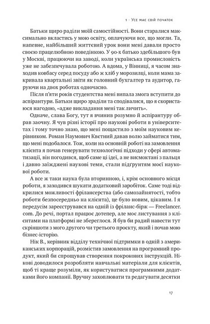 Ця книжка — написаний людською мовою посібник про те, як створити технологічний стартап саме в Україні, в наших повсякденних реаліях. Це особиста історія автора, де всі прийоми та приклади оживають. Це коментарі від інших засновників стартапів про їхній досвід. Автор має на меті також поділитись з вами тим, про що не часто пишуть у книгах. Про особисту мотивацію. Про внутрішні переживання. Про конфлікти між колегами. Про те, що ви могли би почути за чашкою запашного чаю у відвертій розмові на його кухні — Стартап-кухні.