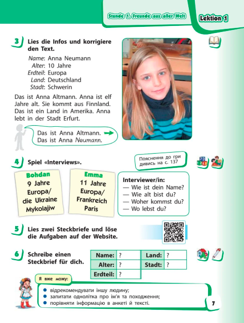За допомогою QR-кодів відбувається перенаправлення на сайт видавництва, де розміщено додаткові інтерактивні завдання, завдяки яким учні зможуть розширити словниковий запас, потренуватися у читанні й аудіюванні, перевірити за допомогою онлайн-тестів свої успіхи в опануванні німецької мови.