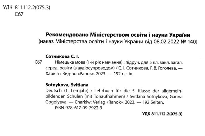 Рекомендовано Міністерством освіти і науки України (наказ МОН України від 08.02.2022 № 140)