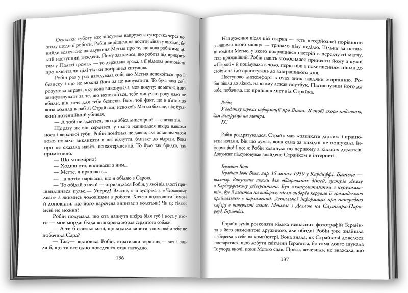 Серія-бестселер світового рівня! Четверта частина! Коли в офіс до приватного детектива Корморана Страйка приходить дивний юнак на ім'я Біллі Найт і просить розслідувати давне вбивство дитини, свідком якого він начебто став. Стайк не може вирішити, як йому вчинити. Вірити чи не вірити юнакові, адже він явно не при собі? Та не встигає Страйк як слід розпитати Біллі, коли той налякано втікає. Намагаючись докопатися до правди, Страйк і Робін - колишня помічниця, а нині повноправна партнерка в детективній агенції - виходять на плутаний слід, який через лондонські задвірки приводить їх у святая святих британського парламенту й у чарівний, але зловісний сільський маєток, де на них чекають небезпеки, таємниці й несподівані відкриття.