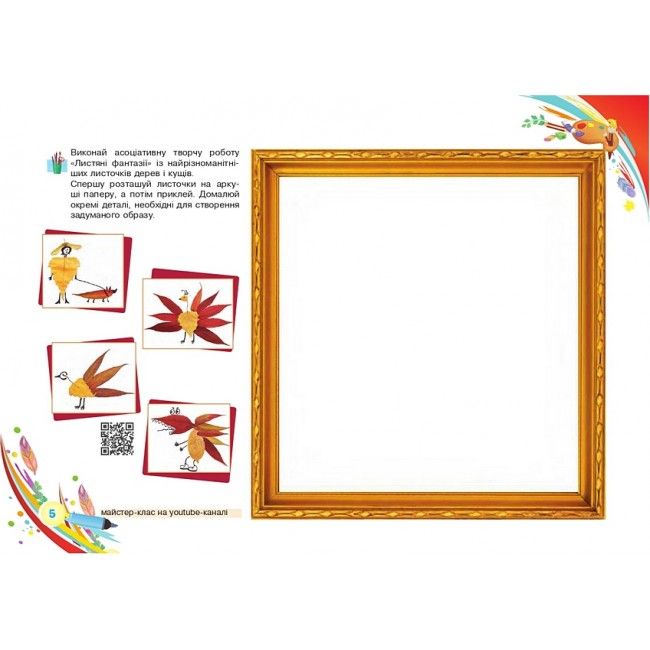Альбом містить практичні завдання до уроків мистецтва у 5 класі відповідно до Державного стандарту базової середньої освіти та модельної навчальної програми «Мистецтво. 5-6 кл.» для закладів загальної середньої освіти (авт. Л.Г. Кондратова). Запропонований матеріал сприятиме розвитку художніх здібностей, творчої уяви, фантазії, логічного мислення п’ятикласників. Для учнів 5 класу, їхніх батьків, вчителів, студентів.