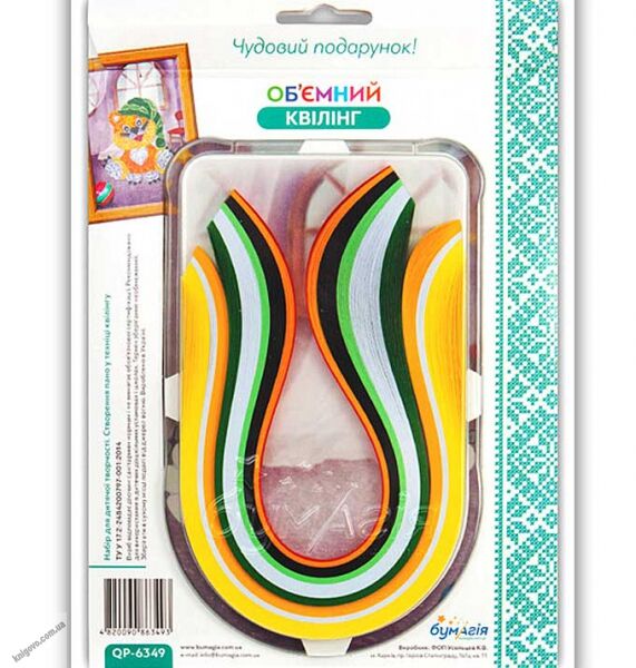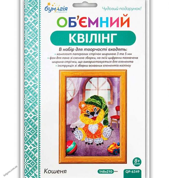 Об'ємний квілінг Кошеня QP-6349 Бумагія. Для дітей від 8 років. Комплект для створення панно в техніці квілінгу, для початківців. Використання стрічок різної ширини надає готовому панно ефект обсягу, що і визначило назву колекції. Набір укладений в барвисту упаковку з прозорим пластиковим блістером.