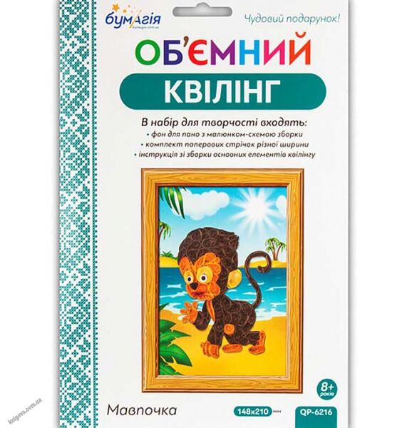 Квіллінг це мистецтво створення плоских або об'ємних композицій зі скручених у спіралі паперових стрічок. Об'ємний квілінг Мавпочка QP-6216 Бумагія.