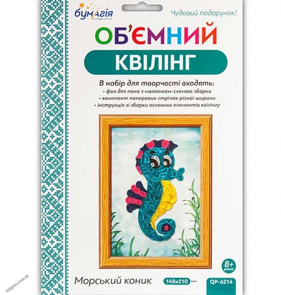 Квіллінг це мистецтво створення плоских або об'ємних композицій зі скручених у спіралі паперових стрічок. Об'ємний квілінг Морський коник QP-6214 Бумагія.