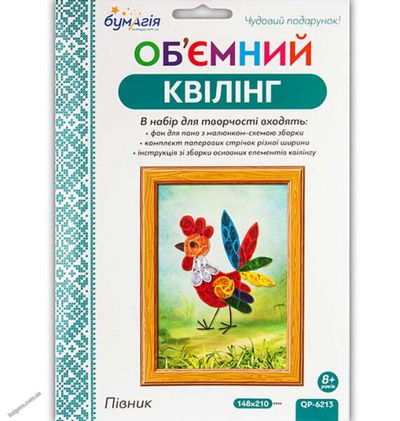 Об'ємний квілінг Півник QP-6213 Бумагія. Квіллінг це мистецтво створення плоских або об'ємних композицій зі скручених у спіралі паперових стрічок. У наші дні квіллінг широко відомий і популярний як хобі в країнах Західної Європи, особливо в Англії та Німеччині. Деякі дослідники вважають, що паперова філігрань зародилася в Західній Європі в XIV-XV ст. Інші стверджують, ніби це мистецтво північноамериканських індіанців і йому вже не одна тисяча років. Тому не можна встановити достовірно, до якого часу належить самий ранній твір з крученого паперу.