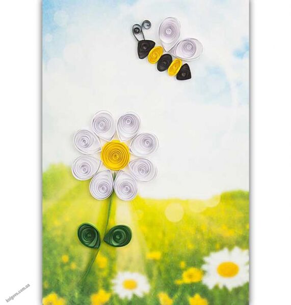 Об'ємний квілінг Ромашка QP-6225 Бумагія. Розмір готового виробу 148 х 210 мм. Квіллінг це мистецтво створення плоских або об'ємних композицій зі скручених у спіралі паперових стрічок.