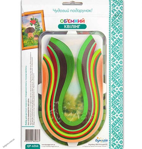 Квіллінг це мистецтво створення плоских або об'ємних композицій зі скручених у спіралі паперових стрічок. Об'ємний квілінг У лісі QP-6266 Бумагія. Комплект для створення панно в техніці квілінгу, для початківців. Використання стрічок різної ширини надає готовому панно ефект обсягу, що і визначило назву колекції. Набір укладений в барвисту упаковку з прозорим пластиковим блістером.