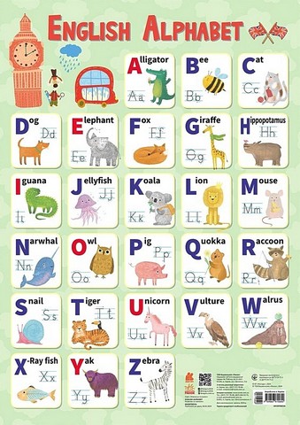 Англійська абетка - на яскравому навчальному плакаті.