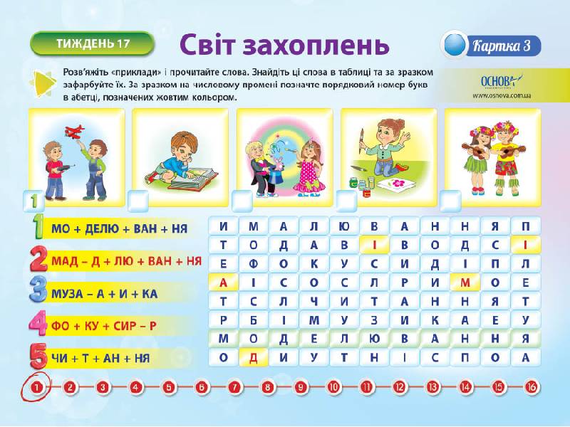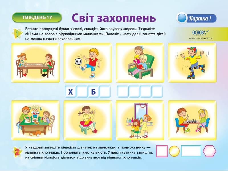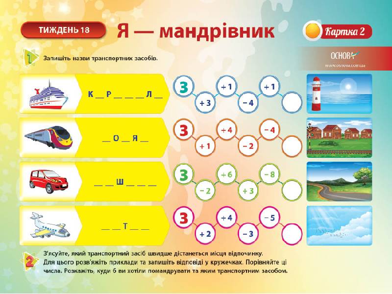 Комплект містить 20 двосторонніх карток формату А4 до курсу «Я досліджую світ» у 1-му класі НУШ (ІІ семестр). + 5 БЕЗКОШТОВНИХ карток у подарунок, які можна завантажити за допомогою QR-коду, зазначеного на обкладинці, або через посилання. Картки містять завдання за темами вісьмох тижнів 1 класу ІІ семестру: • Світ захоплень; • Я мандрівник; • Спорт; • Мої улюблені книги; • Транспорт; • Весна; • Навіщо їсти; • Світ рослин. Світ тварин.