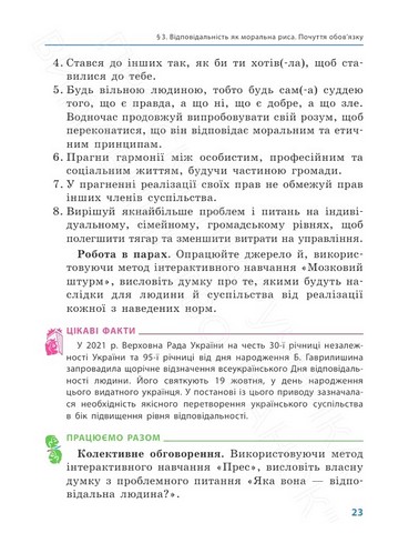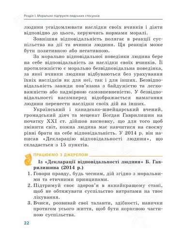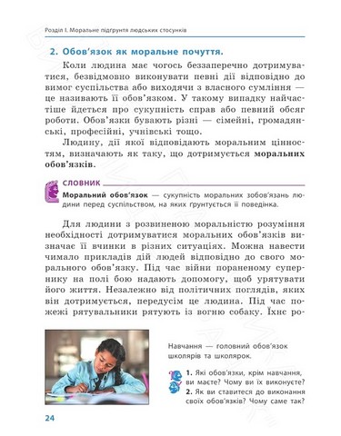 Підручник створено відповідно до модельної навчальної програми «Етика. 5—6 класи» для закладів загальної середньої освіти (авт. О. І. Пометун, Т. О. Ремех, В. Ю. Кришмарел). Підручник містить цікавий фактичний матеріал, різнорівневі запитання і завдання, що разом із багатим ілюстративним рядом дає можливість здійснювати компетентнісне навчання.