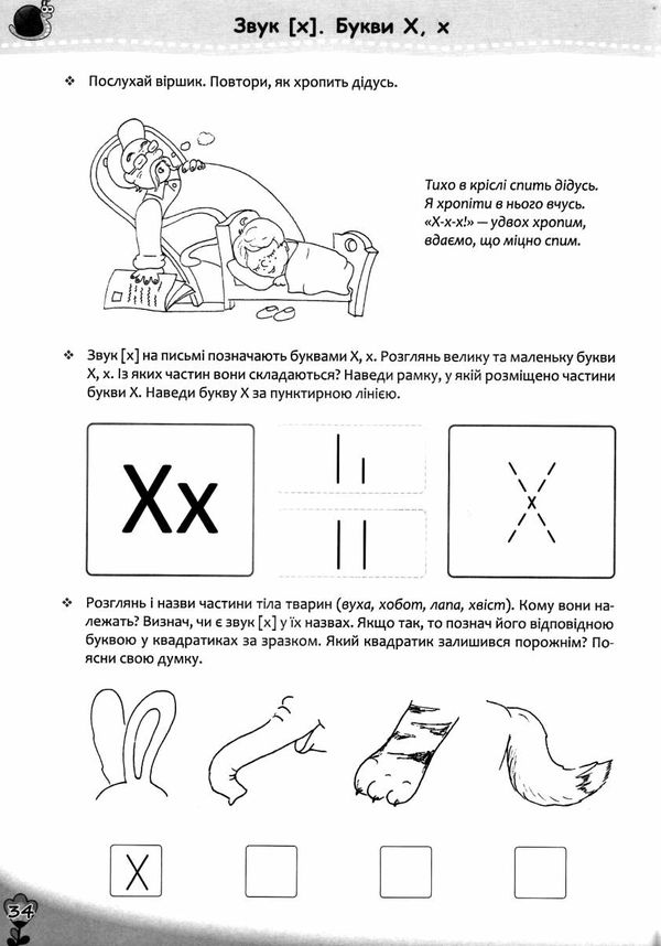 Зошит буде помічником вихователям і батькам у навчанні дитини й підготовці її до школи. Він містить завдання, спрямовані на формування у малюка початкових знань про звук, склад, слово, речення, цікавий дидактичний матеріал для збагачення словникового запасу, вправи для розвитку дрібної моторики.