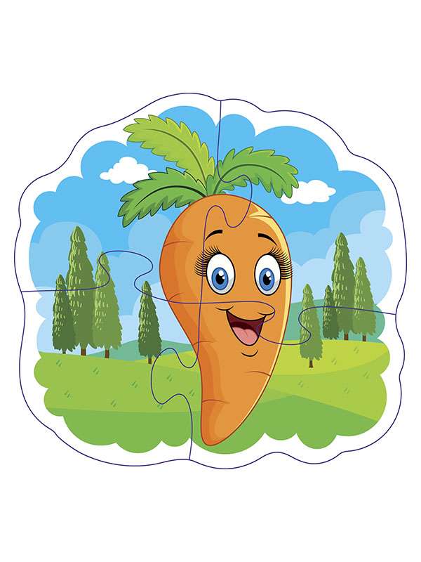 Ваш малюк отримає море задоволення від процесу складання кумедних фігурок овочів та фруктів: капуста, морква, полуниця, яблуко.