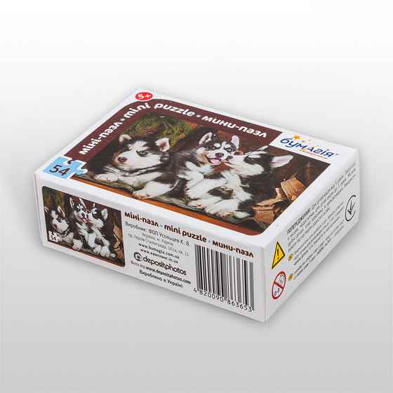 Мини-пазл 54 элемента Код: PZ-1408 Собаки Хаски Бумагия