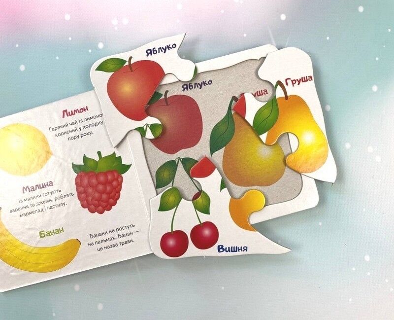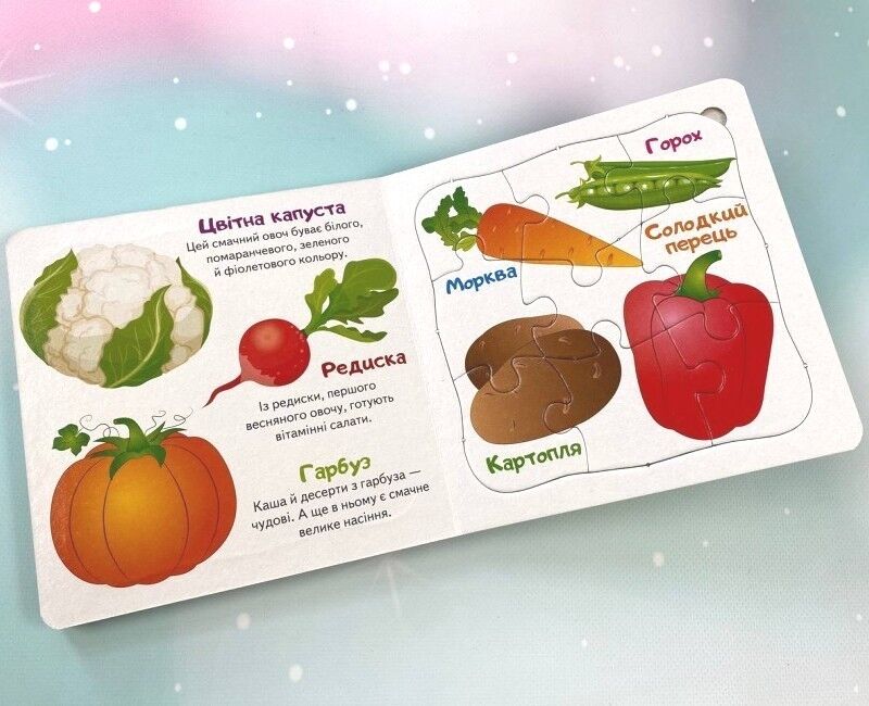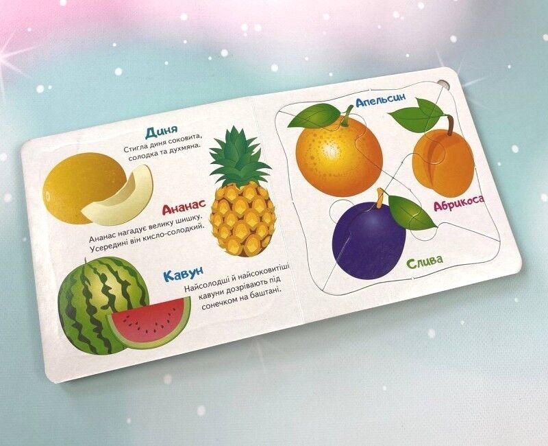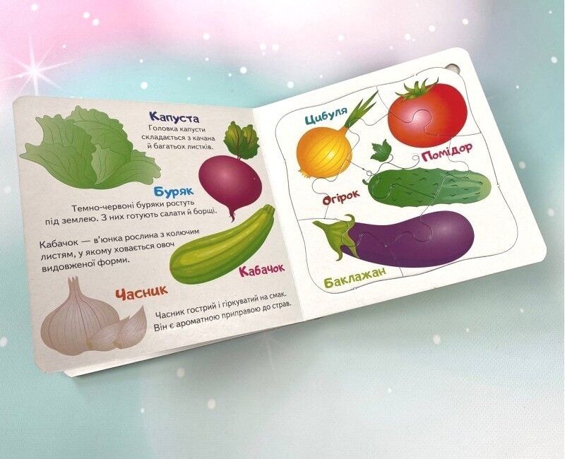Це дуже зручна за розмірами і практична книжка-пазл, яка може виявитися корисною, коли треба чимось зацікавити і розважити дитину. Це ціла захоплююча гра — складати пазли! Гра, яка потребує посидючості, зосередженості, а також навичок дрібної моторики і творчої уяви.