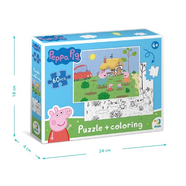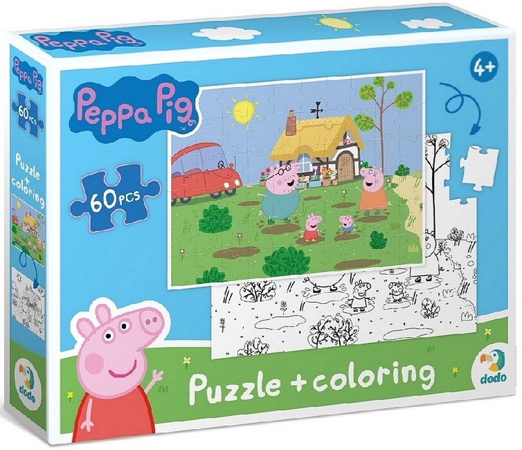 Улюблені персонажі дитячого мультфільму на нових пазлах Dodo. Малята можуть вивчати нові слова, вигадувати історії та головне — дізнатися про дивовижні пригоди Свинки Пеппи, її родини та друзів. І не на звичайному пазлі, а на двосторонньому! Спочатку збери картинку, а потім — розмалюй її. Пазли яскраві, виконані з цупкого картону та зручні у грі.