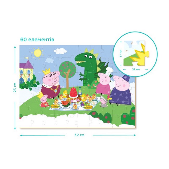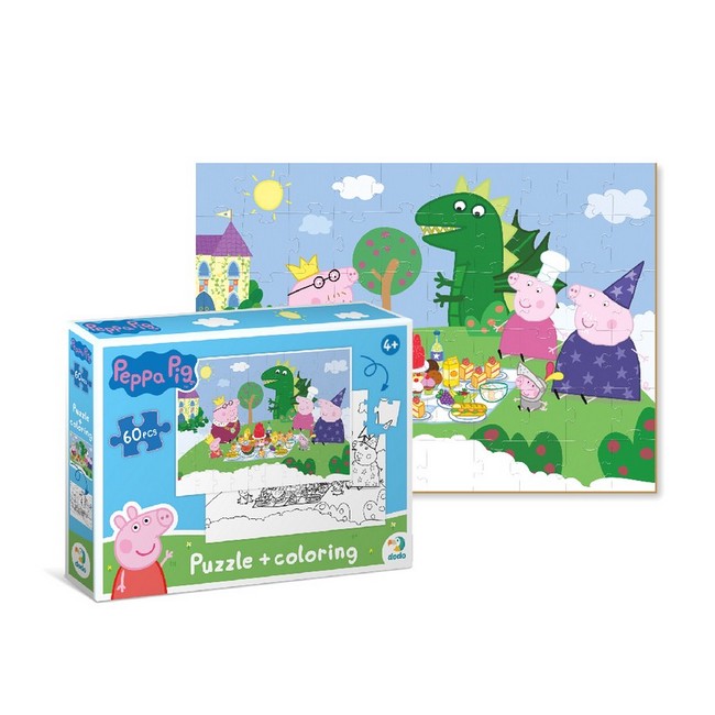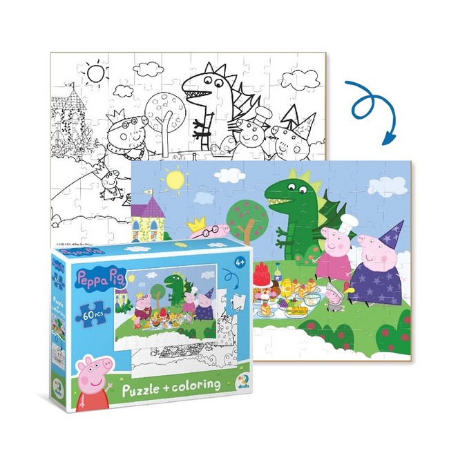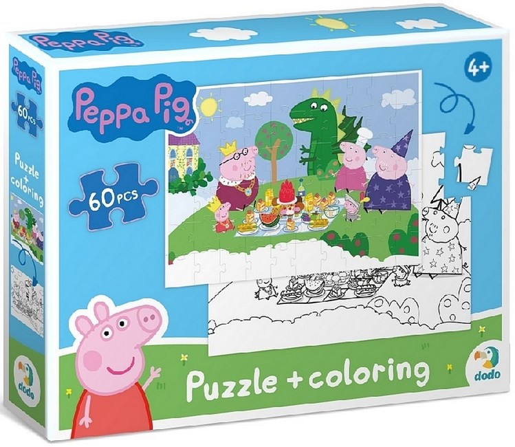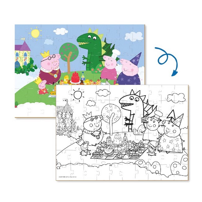 Улюблені персонажі дитячого мультфільму на нових пазлах Dodo. Малята можуть вивчати нові слова, вигадувати історії та головне — дізнатися про дивовижні пригоди Свинки Пеппи, її родини та друзів. І не на звичайному пазлі, а на двосторонньому! Спочатку збери картинку, а потім — розмалюй її. Пазли на 60 елементів яскраві, виконані з цупкого картону та зручні у грі.