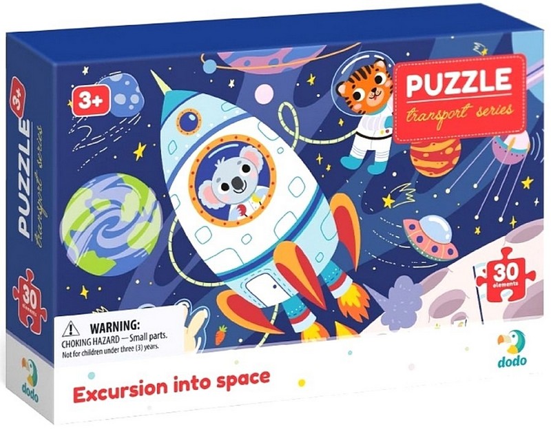 Коала Кала — велика дослідниця космосу. На своїй маленькій ракеті вона відвідала багато планет, познайомилася з прибульцями та знайшла нові зірки. Тепер вона шукає, з ким полетіти у наступну екскурсію у космос. Котик Мурчик вже зголосився, а чи хочуть наші малята? Цікаві та яскраві сюжети — на пазлах серії «Транспорт», що стануть фаворитами любителів машинок. Деталі у пазла великі, виконані зі щільного картону та витримають будь-яку гру. Підходить для дітей від 3-х років, допомагає їм розвивати дрібну моторику, координацію та просторове мислення.