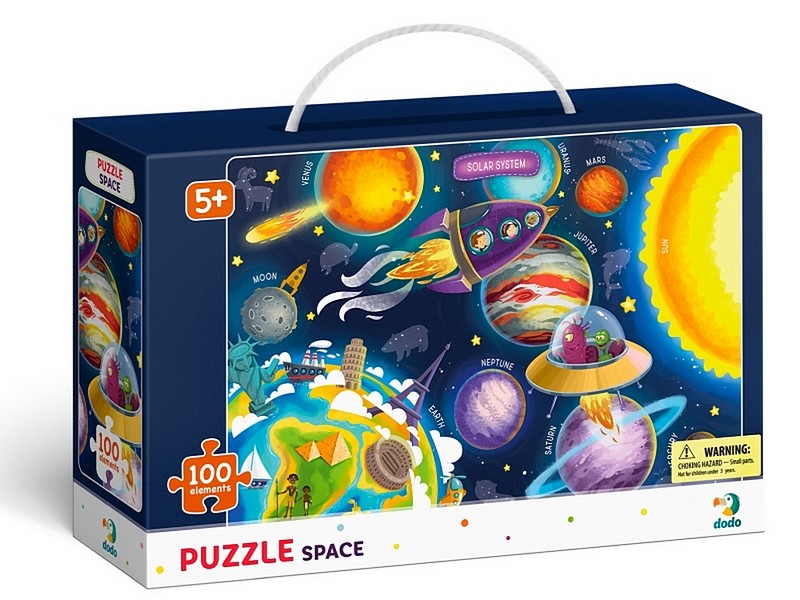 Досліджуємо всі цікавинки космосу за допомогою цього пазла — комети та зірки, астероїди та… прибульці? У які ще пригоди потраплять наші головні герої, досліджуючи планети? А які історії складуть маленькі пзлолюби, дивлячись на яскраву картинку? Пазл виконаний з щільного картону, яскравий та зручний для гри. Ідеальний подарунок для маленьких дослідників та мандрівників.