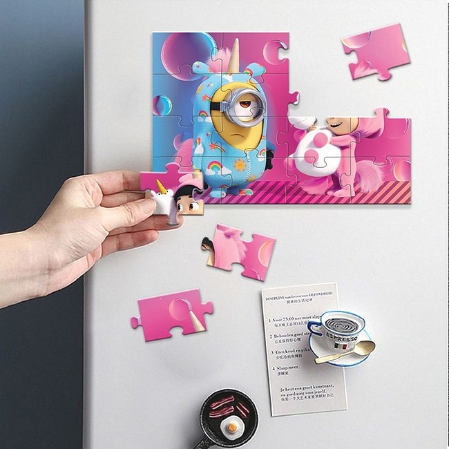 Магнітний пазл із зображенням головних персонажів мультфільму "Нікчемний Я" уже чекає на вас. На пазлі натхненна Агнес із трохи менш натхненним посіпакою Стюартом вирішили влаштувати піжамну вечірку. Дівчинка цього дуже хотіла, судячи з її іскорок в очах, а Стюарт, як справжній друг, її підтримав.