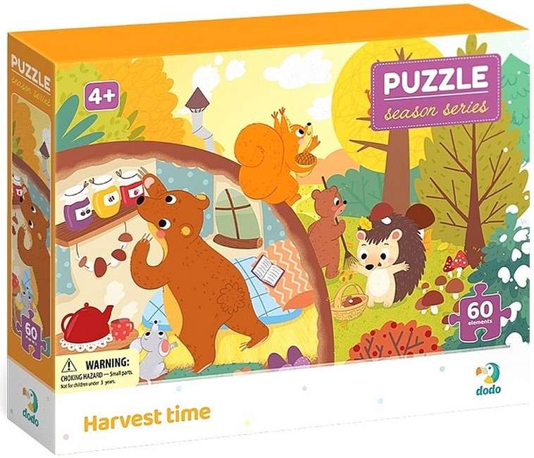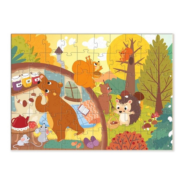 Настає осінь. Дерева вкриваються золотом, збирають останній врожай, а медведик починає готуватися до сплячки. Він запасається варенням, прибирає у своєму барлогу та заварює запашний чай. Робимо навколишній світ чарівнішим за допомогою серії «Пори року», які стануть фаворитами маленьких фантазерів. Яскраві пазли для дітей від 4-х років, розповідають історії пригод милих тваринок. Зберіть всі чотири пазли серії, щоб скласти їх у єдину картинку! Виготовлені з якісного картону, вони довговічні, приємні на дотик та зручні у використанні.