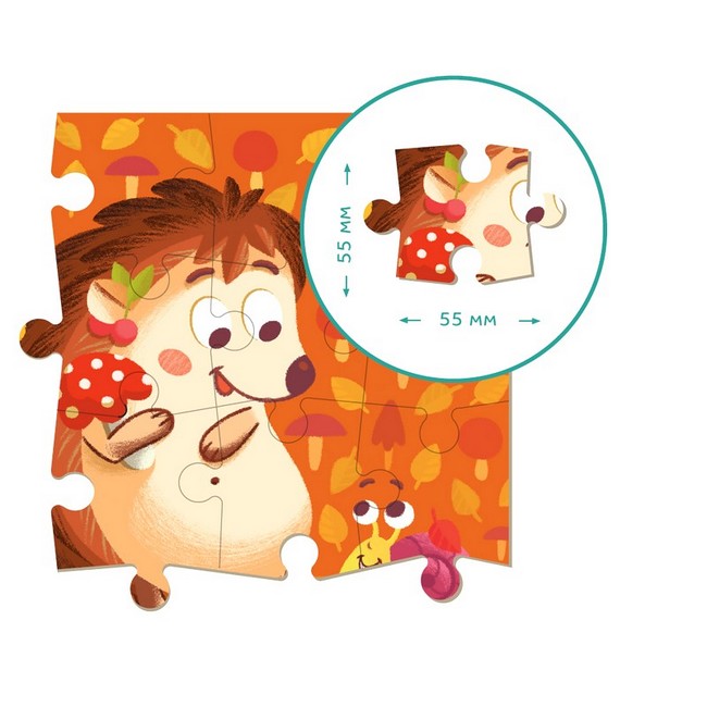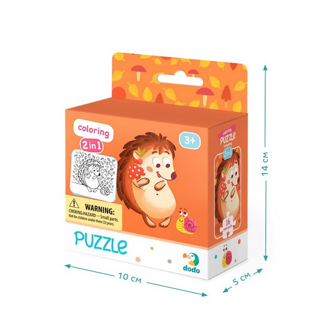 Прийшла пора збору врожаю, тож їжачок поспішає принести до своєї хатинки свіжі грибочки. Але як не зупинитися та не пригостити друга-равлика смаколиком? Пазли 2в1 поєднують дві улюблені розваги: спочатку дітям треба буде скласти пазл, а потім — розмалювати чорно-біле зображення з протилежної сторони. Мальовничі картинки захоплюють увагу дитини, а завдяки великим деталям та щільному картону пазл витримає будь-яку гру. Підходить для дітей від 3-х років, допомагає їм розвивати дрібну моторику, координацію та просторове мислення.