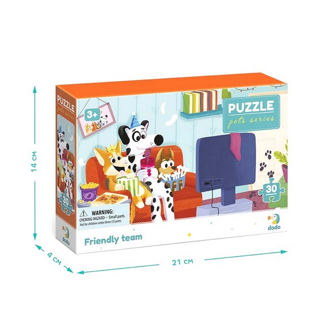 Пригоди веселих пухнастиків з серії «Домашні улюбленці» швидко розважать малечу. Зберіть усі чотири пазли та складіть єдину, веселу картинку. Виготовлені з якісного картону, пазли довговічні, приємні на дотик та зручні у використанні. Підходить для дітей від 3-х років, допомагає їм розвивати дрібну моторику, координацію та просторове мислення.