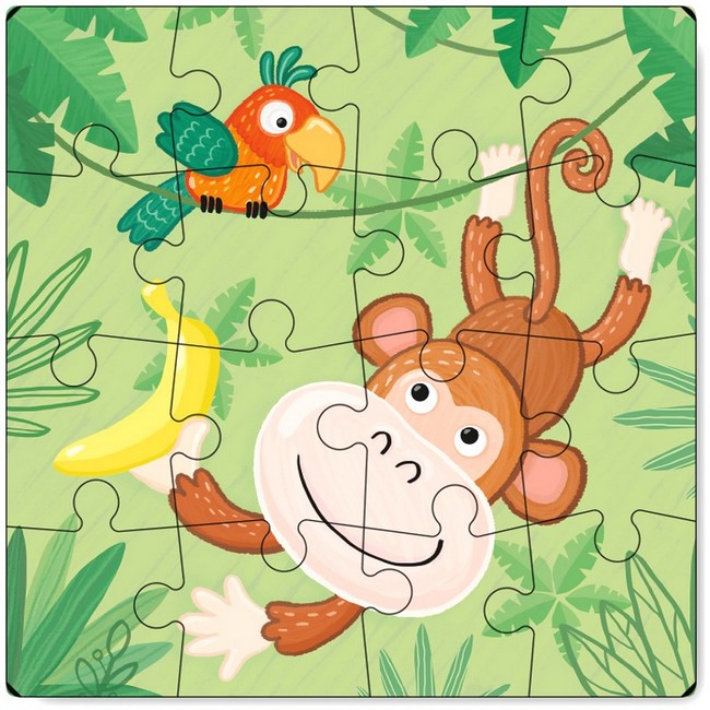 Мавпеня знайшло найсипліший банан у джунглях! Але не їсти ж його одному, завжди треба ділитися з друзями-пташками. Збираймо цілий зоопарк у себе вдома — цуцик, левеня, жирафа, кошеня і багато інших тваринок у серії на 16 елементів. Мальовничі картинки захоплюють увагу дитини, а завдяки великим деталям та щільному картону пазл витримає будь-яку гру. Підходить для дітей від 3-х років, допомагає їм розвивати дрібну моторику, координацію та просторове мислення.