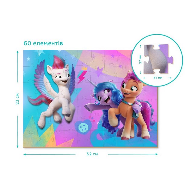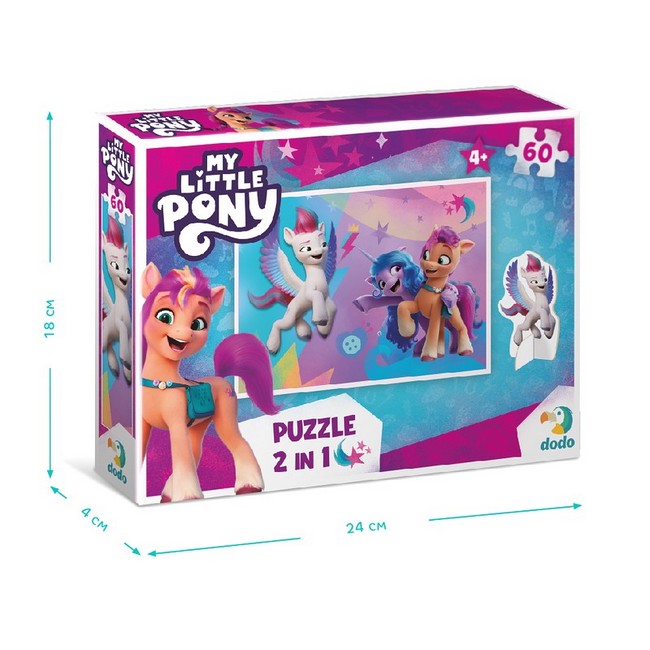 Веселі пригоди Санні, Іззі та Зіпп на цьому крутому пазлі. Тільки подивіться на ці яскраві кольори! А у подарунок — фігурка Зіпп. Краще за пазл від Dodo може бути тільки пазл, у додаток до якого буде колекційна фігурка з улюбленим персонажем. І у нас є такі — з милими My Little Pony. У серії є 4 пазли, який зображує пригоди яскравих магічних поні. Та у комплекті — фігурка з однією з персонажок. Збери всі!