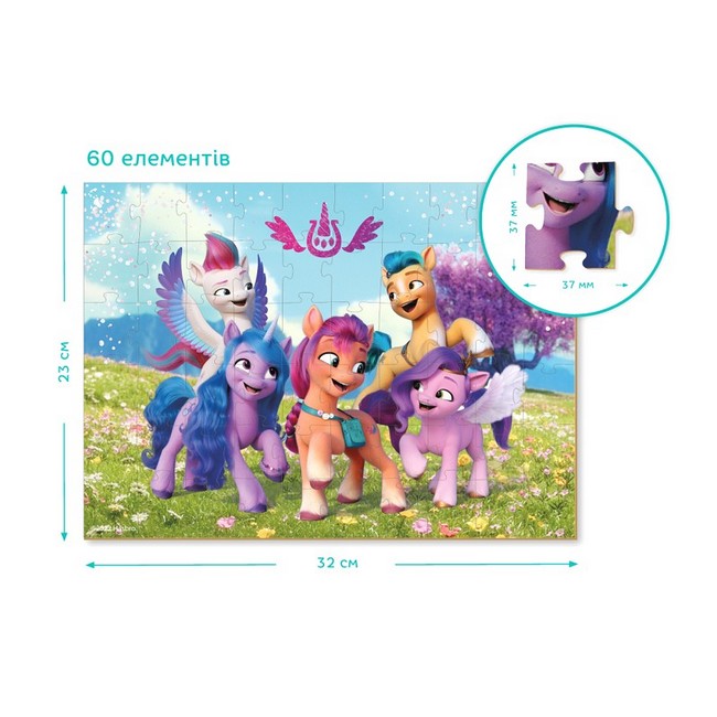 Санні Старскаут запрошує у пригоди в Маретім-Бей! Тільки подивіться, які чарівні поля, у них так весело гратися поні. Друзі Санні — Іззі, Піп та Зіп обожнюють це магічне місце. Малята можуть вивчати нові слова, вигадувати історії та головне — дізнатися про дивовижні пригоди поні. Пазли на 60 елементів розраховані на дітей від 4-х років, вони яскраві, виконані з цупкого картону та зручні у грі.