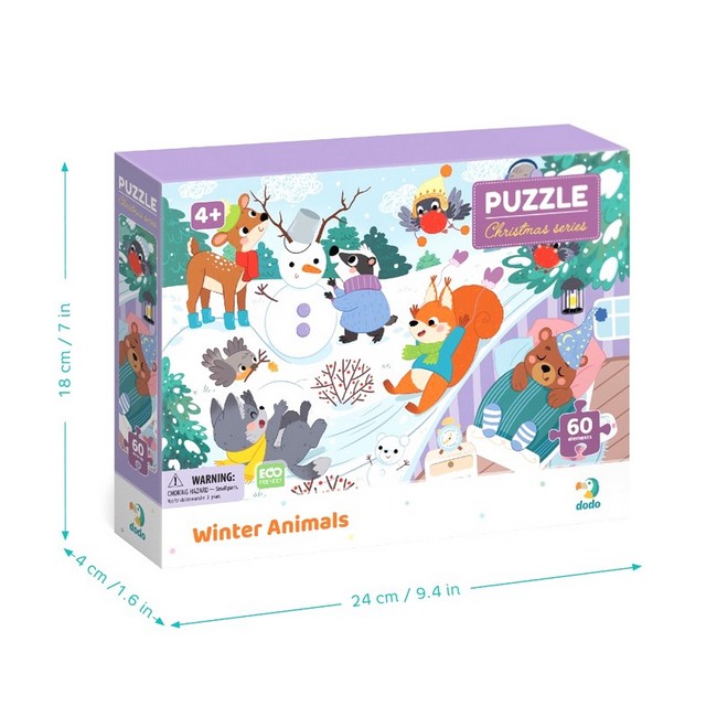 Пазл Dodo «Зимові тваринки» – це чудовий спосіб додати святкового настрою малятам від 4 років. Цей пазл із серії святкових пазлів складається з 60 елементів і переносить малят у казковий ліс, де всі лісові звірятка зібрались на зимові розваги.