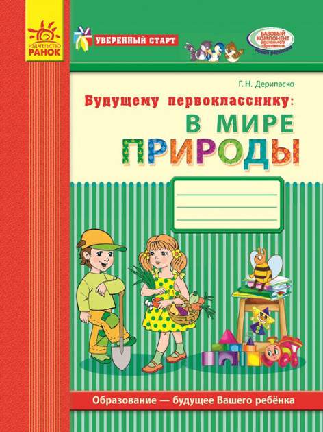 Уверенный старт Будущему первокласснику В мире природы Рабочая тетрадь Ранок. Работа с тетрадью «Будущему первокласснику: в мире природы» обеспечит формирование у детей целостной картины мира, компетентного поведения в разных жизненных ситуациях. Тетрадь предназначена родителям, занимающимся подготовкой детей 5—6 лет к школьной жизни, воспитателям, гувернерам, студентам высших учебных заведений по специальности «Дошкольное воспитание».