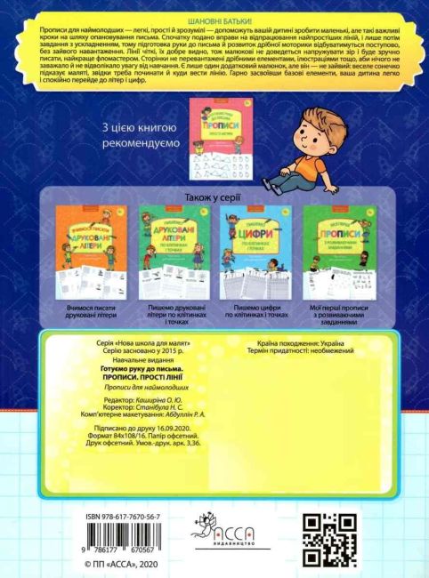 Готуємо руку до письма Прописи Прості лінії Нова школа для малят НУШ 3 АССА. легкі, прості і зрозумілі. Посібник допоможе вашій дитині зробити маленькі, але такі важливі кроки на шляху опанування письма.