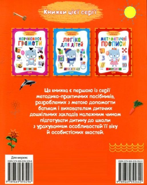 Готуємось до школи Підготовка руки до письма - це книжка, яка є першою із серії методико-практичних посібників, розроблених з метою допомогти батькам і вихователям дитячих дошкільних закладів належним чином підготувати дитину до школи з урахуванням особливостей її віку й особистісних якостей.