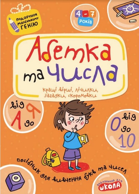 У посібнику подано віршований матеріал, який допоможе у доступній, ігровій формі ознайомити дитину з буквами від А до Я та числами від 0 до 10.