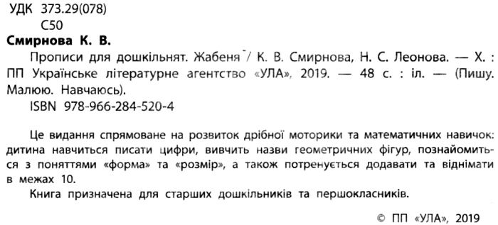 Прописи для дошкільнят Жабеня Пишу Малюю Навчаюсь Авт: Смирнова К. Вид: УЛА 19942