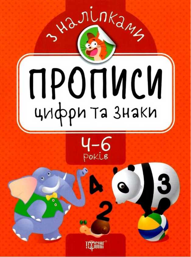 Прописи з наліпкамми 4-6 років Цифри та знаки Торсінг. Посібник допоможе дитині розвинути дрібну моторику пальців і кистей рук, закріпити графічні навички. Для дітей дошкільного віку