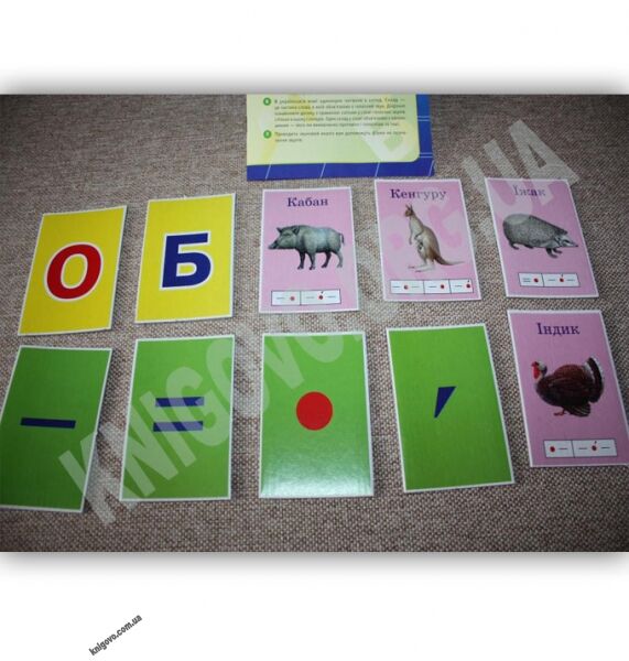 Яскраві картки з картинками тварин та буквами допоможуть вашій дитині розвинути фонематичний слух, навчитися робити повний звуковий аналіз слів.