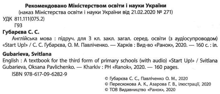 Підручник Англійська мова Start Up! 3 клас НУШ Авт: Губарєва С.С. Павліченко О.М. Вид-во: Ранок 27967