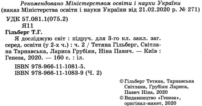 Підручник Я досліджую світ 3 клас Частина 2 НУШ Авт: Гільберг Т. Тарнавська С. Грубіян Л. Павич Н. Вид-во: Генеза 28099