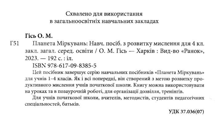 Навчальний посібник з розвитку мислення Планета Міркувань 4 клас НУШ Авт: Гісь О.М. Вид-во: Ранок 90828